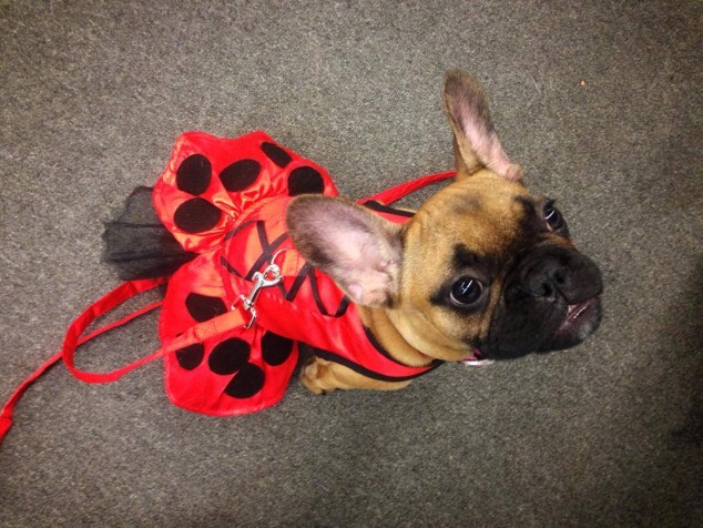 Raylee all dressed up at one of Thor’s agility classes. We were working on getting her used to a harness and this dress was perfect for that!